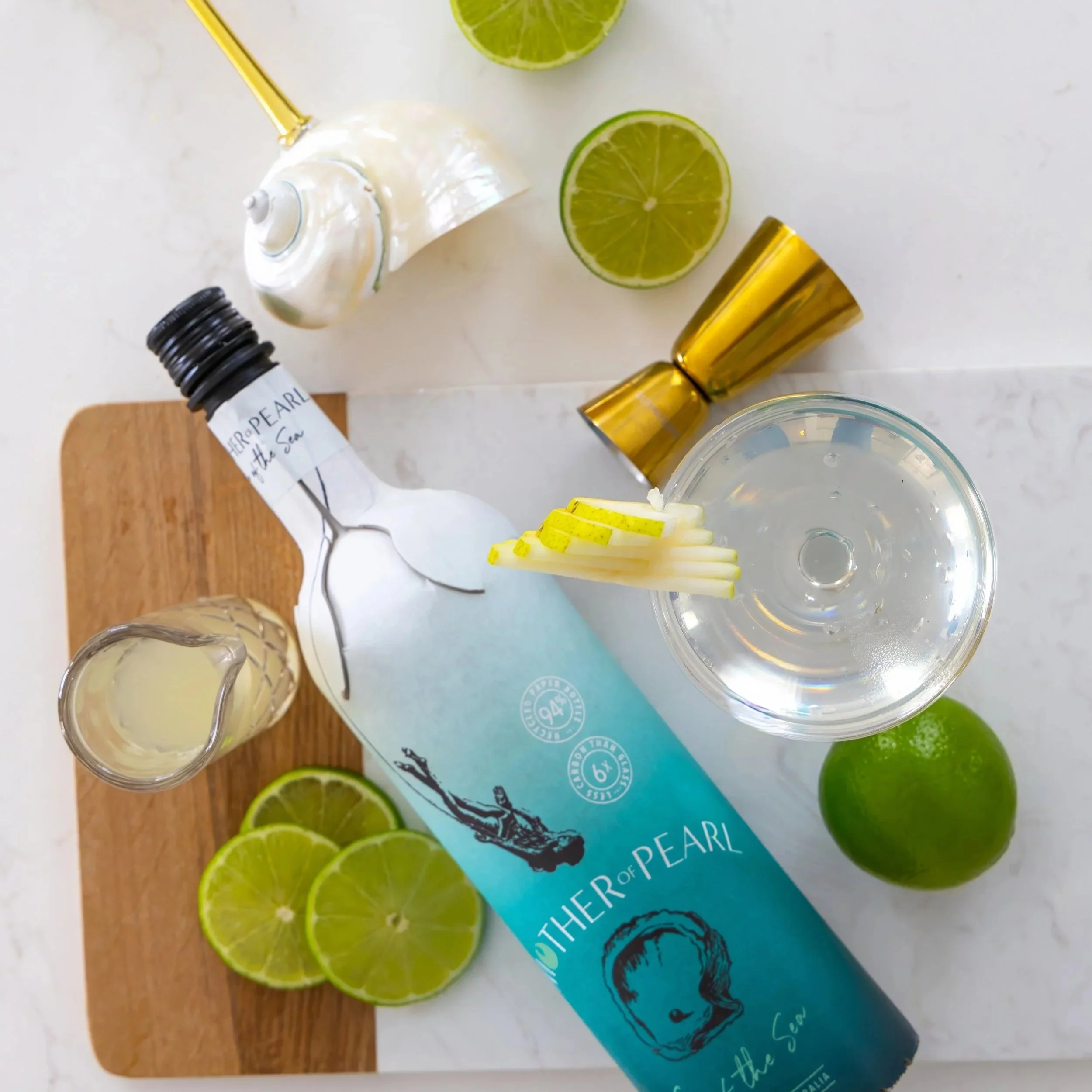 Introduced to our portfolio in 2023, the paper bottle immediately appealed for both its environmental credentials and the new possibilities it creates for where our spirits can be enjoyed. Mother of Pearl is proud to be the first Australian brand to package spirits and now wines in this format.