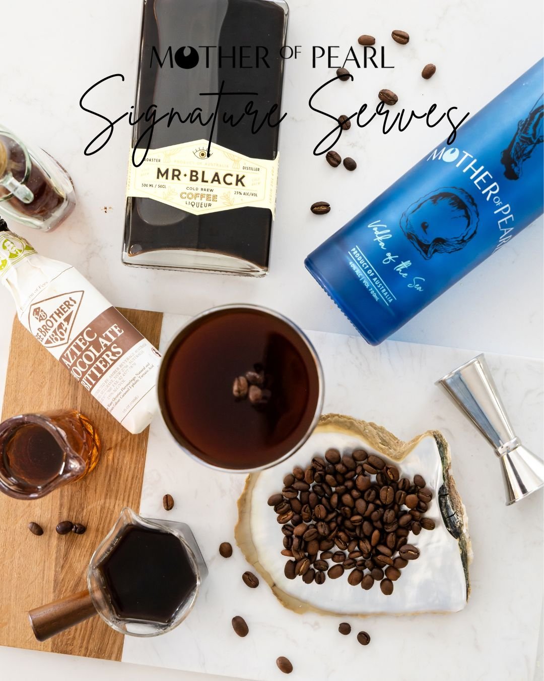 A twist on the iconic cocktail first created in the 1980s by London bartender Dick Bradsell. Originally crafted to “wake up” a tired model, this elegant blend of vodka, coffee liqueur, and espresso has become a modern classic. Our version adds a pearlescent shimmer, making it as beautiful as it is bold.