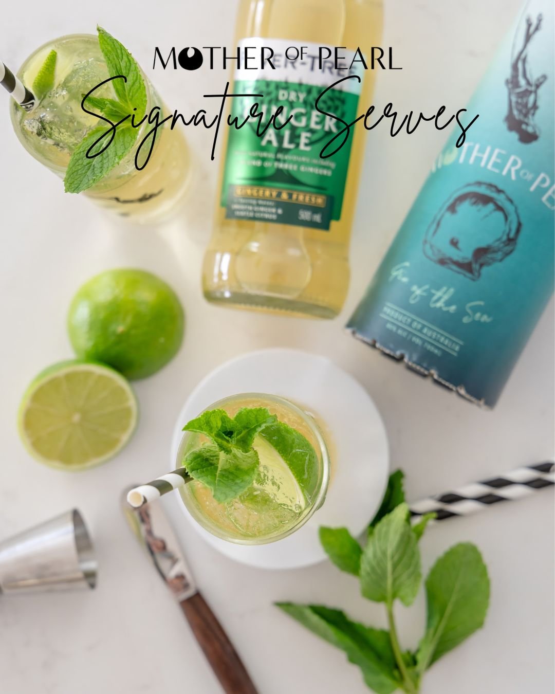 Swing into the Mother of Pearl Gin Ginger Spritz